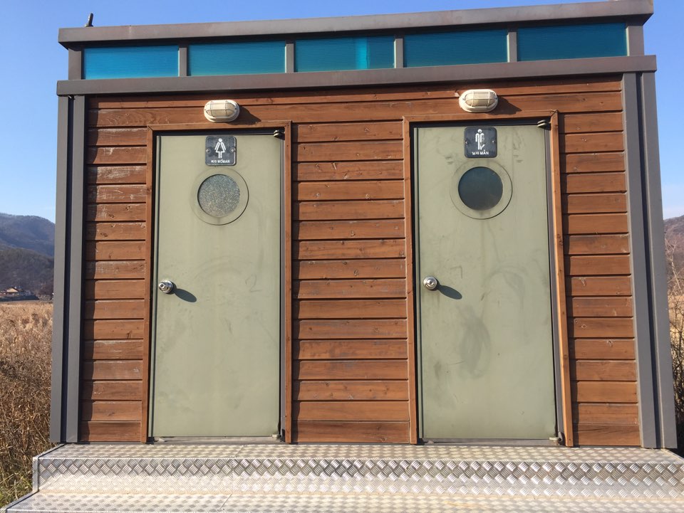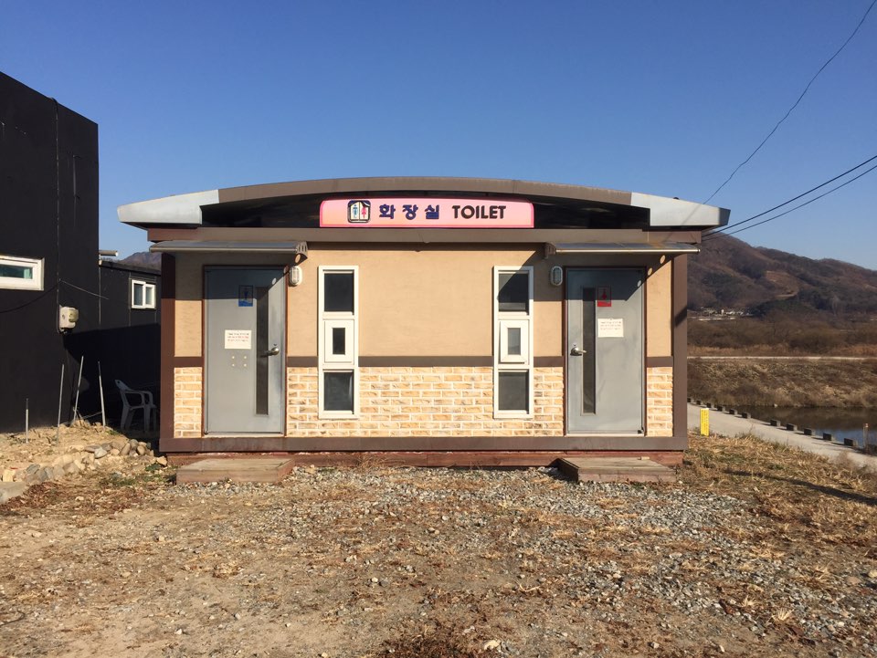비내섬 다리를 건너기 전에 화장실이(좌변기가 있으나 깨끗하진 않아요) 하나 있고, 섬 중간에 간이 화장실이 하나 있어요, 입구에 있는 화장실 옆에 비내쉼터라고 해서 여러 간식거리를 파는 곳도 있어요
